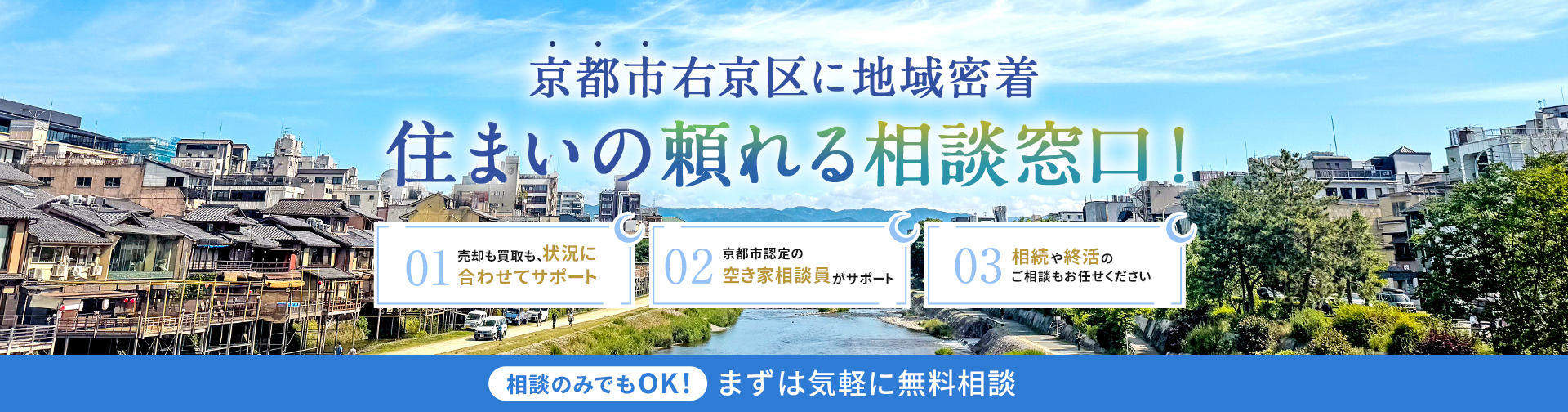 弊社は不動産会社ですが、不動産のことはもちろん、相続のことや空き家、離婚、終活、税金のことなど、「なんでも気軽に相談できる場所にできたらいいな。」「地域の方々にとってもっと身近な存在にしたいな。」と考えております。私が生まれ育った京都市右京区に根ざした地域密着の不動産会社として、単なる「売る・買う」のサポートではなく、お客様一人ひとりの「人生の物語」を大切に、皆さまのサポートを続けてまいります。