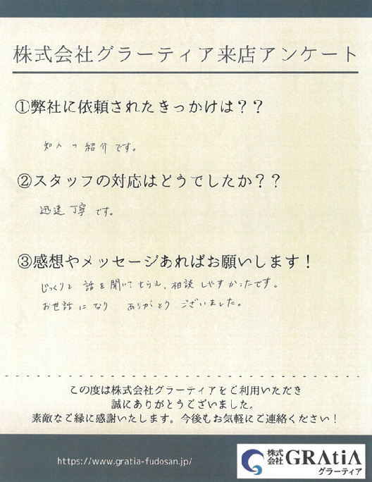 何度もお話を重ねる中でご満足いただけるお取引ができたこと、大変うれしく思います。
