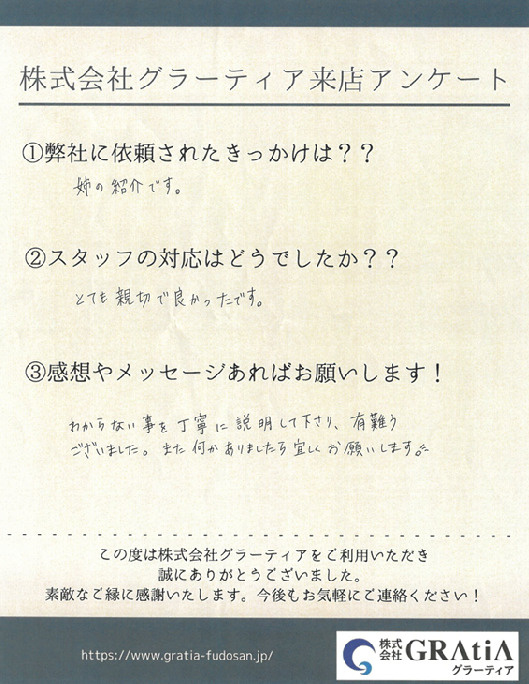 土地購入のお手伝いをさせていただき、誠にありがとうございました。